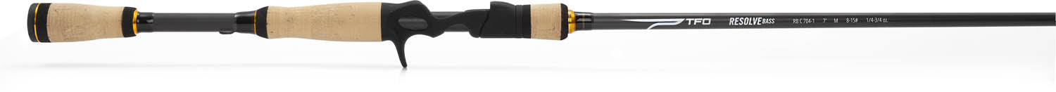 • The TFO Resolve Bass series rods feature cork grips. soft-touch. feel-through guide frames and a sensitive carbon fiber fabric blank to let you feel what's happening underwater.